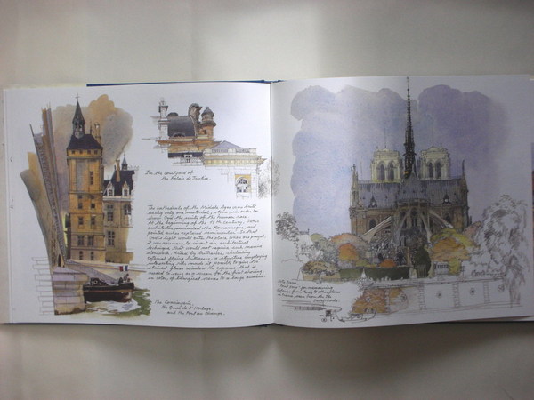 這本是在學校買的,那時翻看很喜歡它的水彩風格,總共是三本一套,我只買了巴黎這本,其他兩本是威尼斯和...什麼來著?大概是泰國吧。這本也是精裝的。