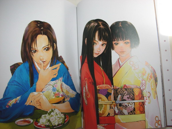 岡崎武士的畫冊,也是看封面就買了,因為實在很美,色彩明亮鮮豔又不流俗,封面那件粉色和服真是漂亮。